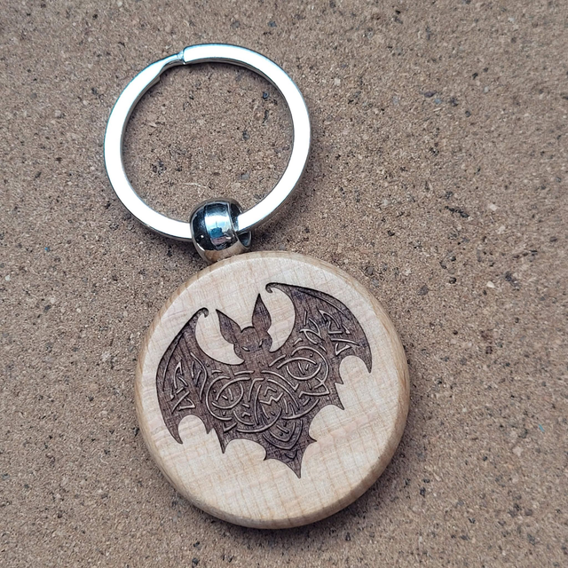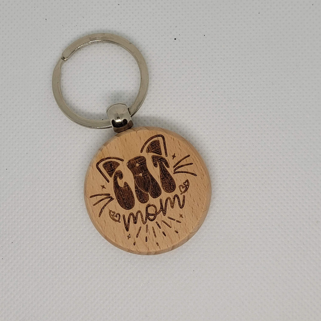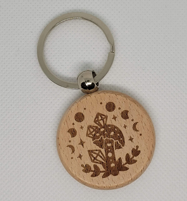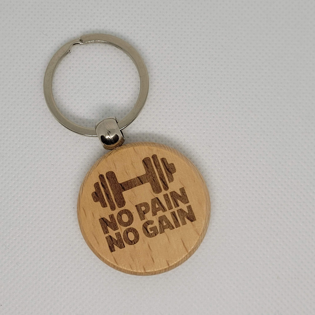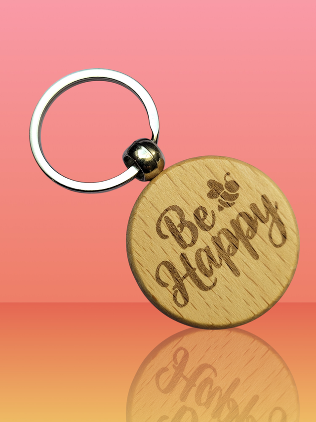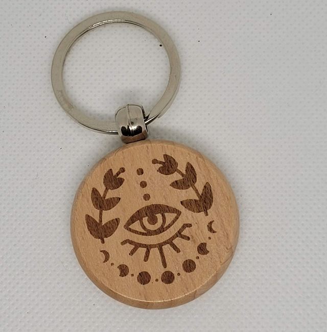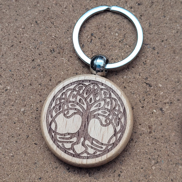 Beukenhouten sleutelhanger gegraveerd met RVS ring
