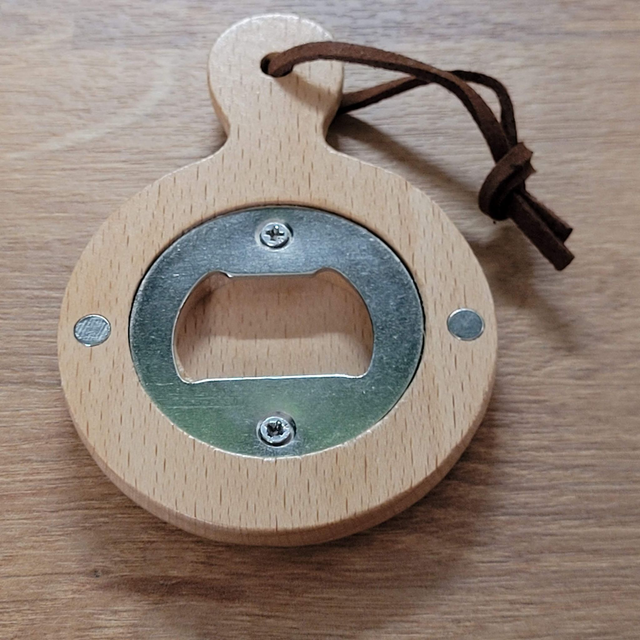 Beukenhouten flesopener met bier-quote in snijplankvorm
